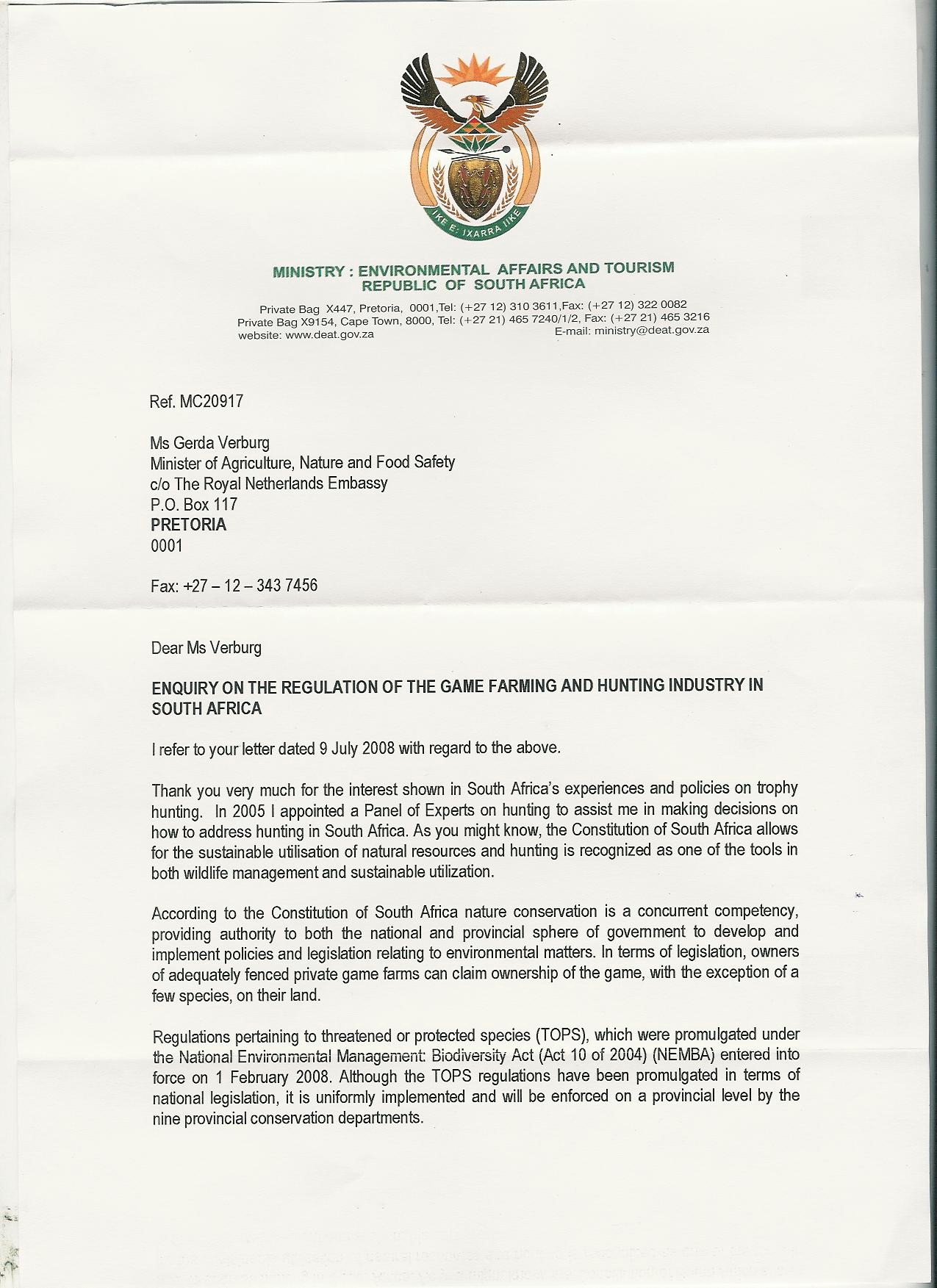 Bijlage bij: Trofeejacht Zuid-Afrika (2008D10870)